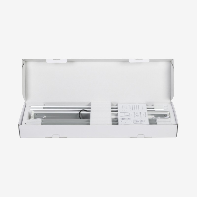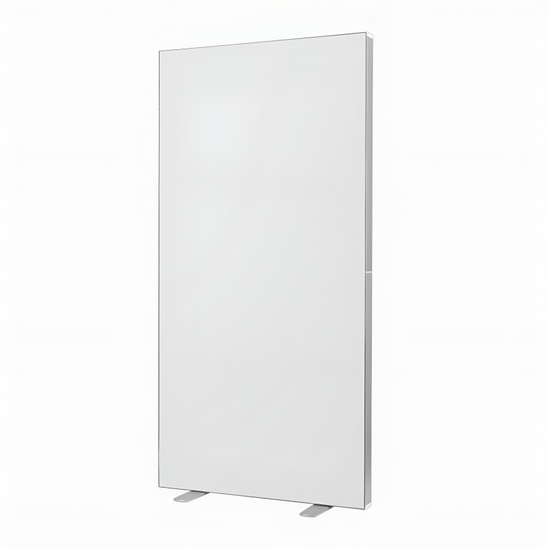Srebrna, anodowana rama o grubości 8 cm prezentuje się nowocześnie i minimalistycznie. W zestawie znajdują się dedykowane stopy stabilizujące oraz profil wzmacniający, które gwarantują, że kaseton będzie stał pewnie nawet w miejscach o dużym natężeniu ruchu pieszych.